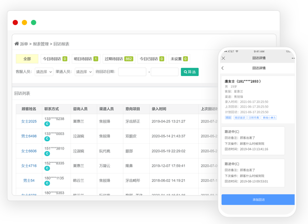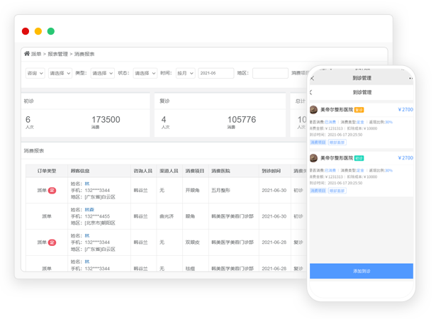 線索管理,跟進(jìn)顧客與消費(fèi)備注,消費(fèi)報(bào)表與對賬