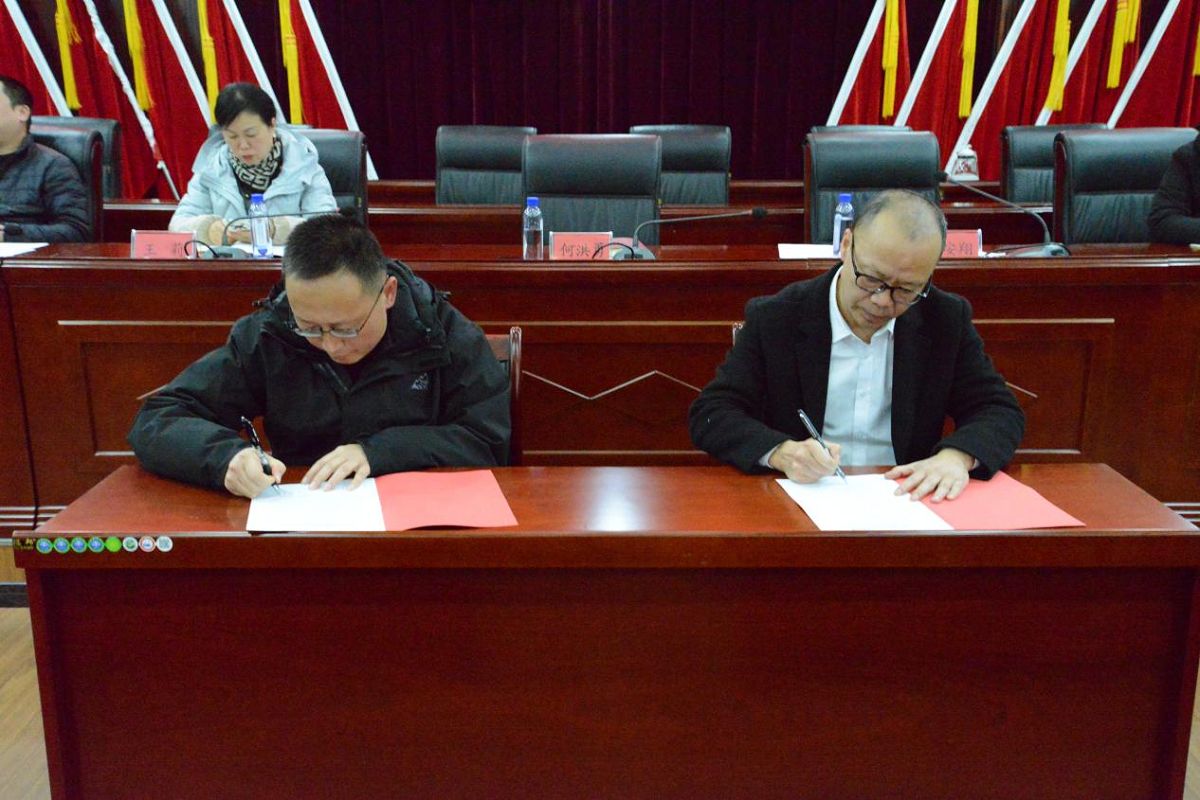集團公司黨委書記、董事長何洪勇與黨委副書記、總經(jīng)理馮安翔作代表簽訂“雙層雙向”承諾書。